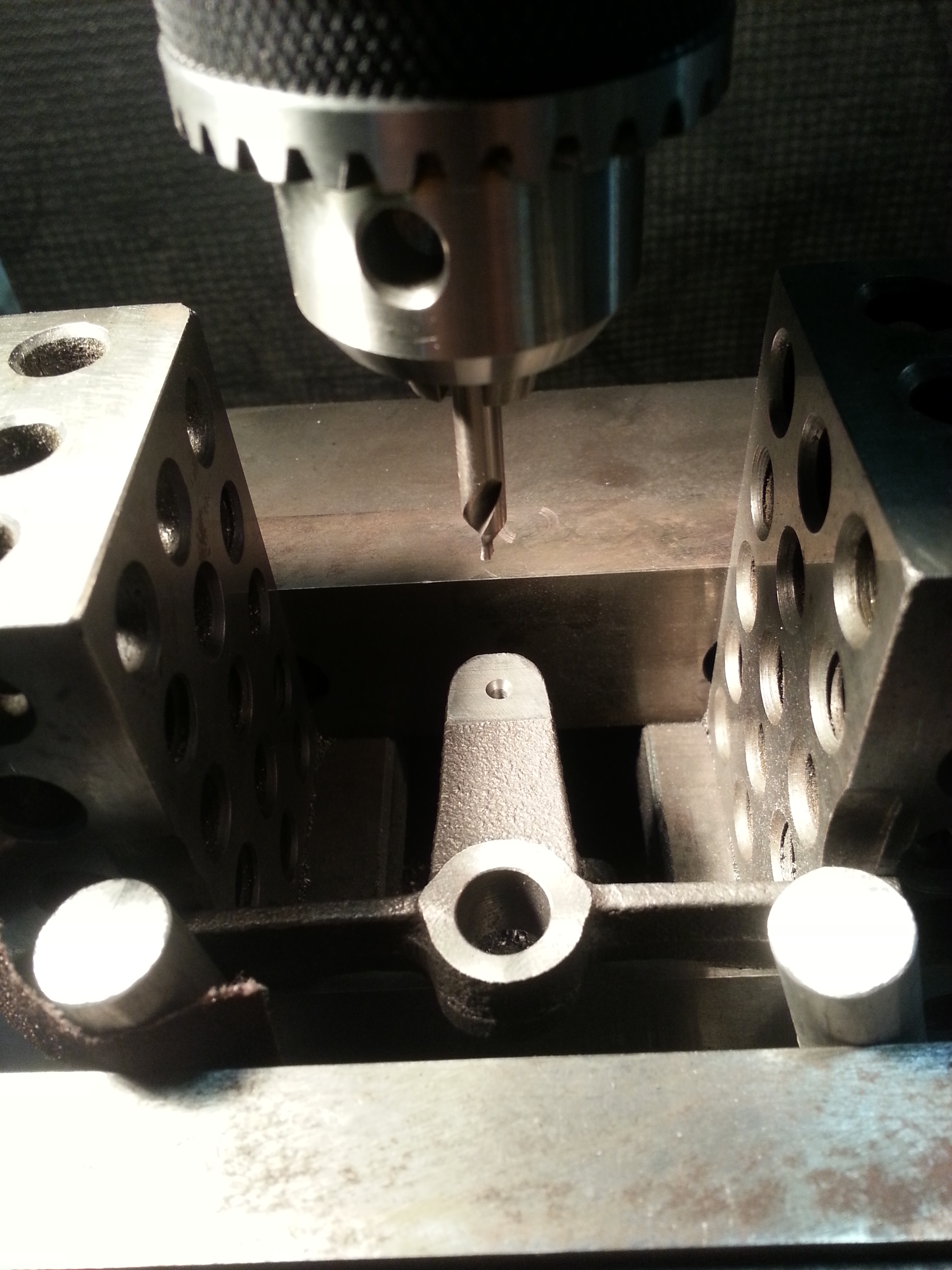 For the spark rocker I needed some place to start. I filed the casting numbers down until they were at the same plane as the outboard arms. Then I set it up in the mill eyeballing everything level. This give me a starting point. I milled 3 flats on the shaft for the lathe's 4 jaw chuck. I flipped it over and milled a fourth flat. Size doesn't mean anything it's just flat surfaces to hold. I set it up in the lathe and indicated to the round part. It's a casting so it's not going to be that critical it's a starting point. I then took a skim cut across the arms then faced the inside to length, then drilled and reamed it. Just for kicks I also turned the outside of the arms so they are centered and square. In the 3rd pic I set a parallel on the faced section to square it that way and eyeballed the arms level. This gave me the hold I needed to mill the pads for the 3/16 hole. I also took skim cuts at the ends of the arms to establish the same arms level later. I wasn't sure if I would need it but I'm VERY glad I did. The 4th and 5th pics are having the part clamped using those flats and the face cut I made on the arms when I had it in the lathe. Another example of taking an opportunity to make a location cut any time you can since you never know when you'll need it! The last pic is again using those flats cut earlier to rest it on parallels to cut the recess and drill the holes.